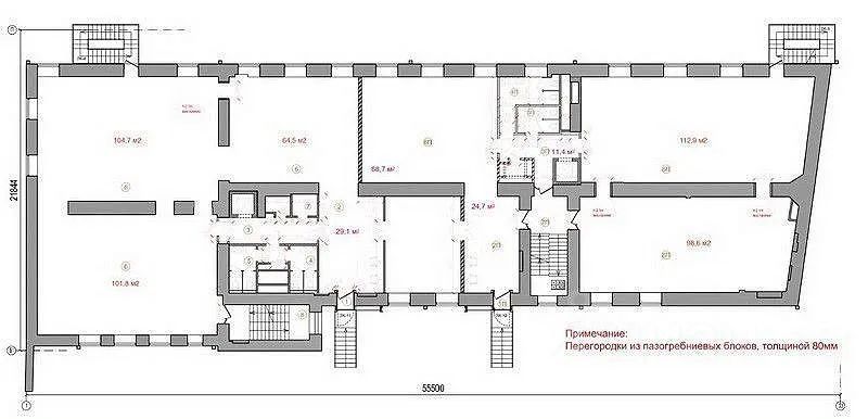 Описание помещения: Два подъезда - 1500 м2 и 1300 м2.