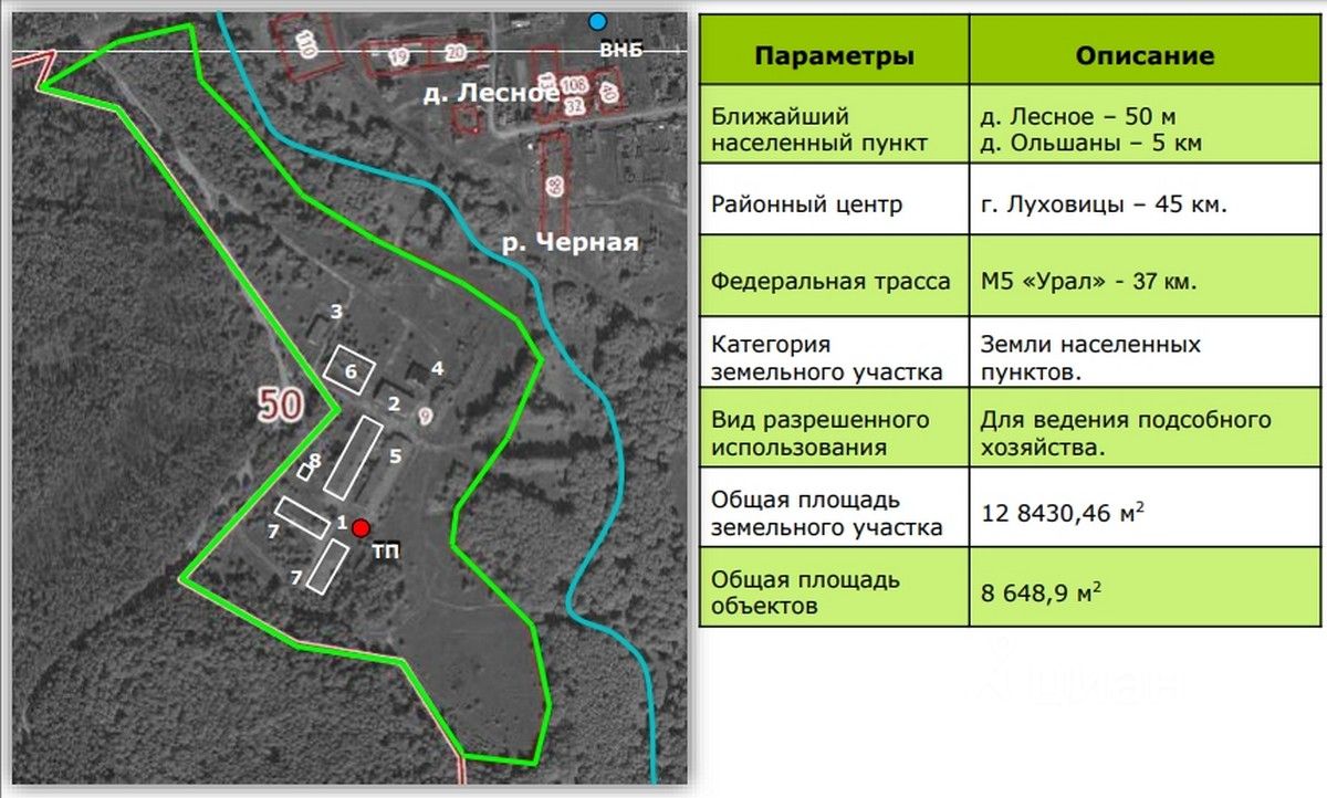 На земле несколько объектов общей площадью 8650 кв.м., два многоквартирных жилых дома для рабочего персонала, несколько помещений разной площади, две своих артезианских скважины с водозаборным узлом (готовый бизнес по продаже воды), водонапорная башня и новая трансформаторная подстанция. Электричество 375 КВ.