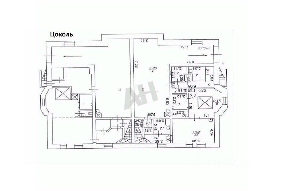 Особняк состоит из двух зеркальных половин, что позволяет рассмотреть возможность продажи каждой части по отдельности. Планировка смешанная, вход в помещение — отдельный с улицы, доступ свободный. Высота потолков варьируется от 2,5 до 3 метров.