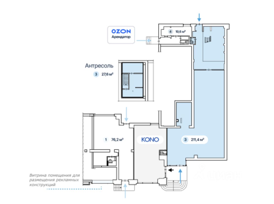 239,0 кв.м на 1 этаже и антресоли жилого здания. Планировка — свободная, перекрытия — ж/б, высота потолков на 1 этаже — 4,4 м, на антресоли — 2,0 м. Отлично подойдёт под любой вид деятельности: торговое помещение, магазин, ресторан, кафе, аптека, салон красоты, банк, офис продаж, кофейня и др.