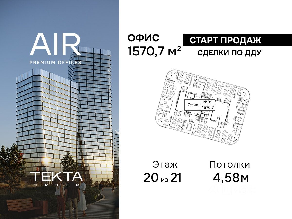Продается помещение свободного назначения 1570.70 м² на 20 этаже бизнес-центра AIR.
