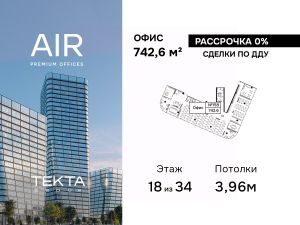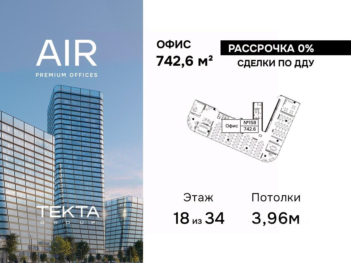 Продается помещение свободного назначения 742.60 м² на 18 этаже бизнес-центра AIR.