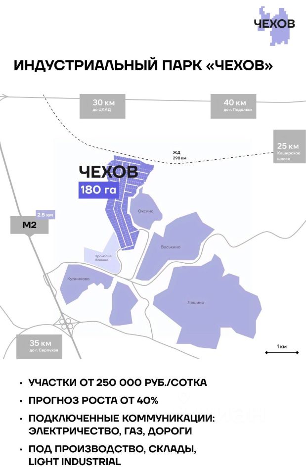 Предлагаем вам уникальную возможность приобрести участок промышленного назначения в одном из самых перспективных индустриальных парков Московской области — "Чехов".