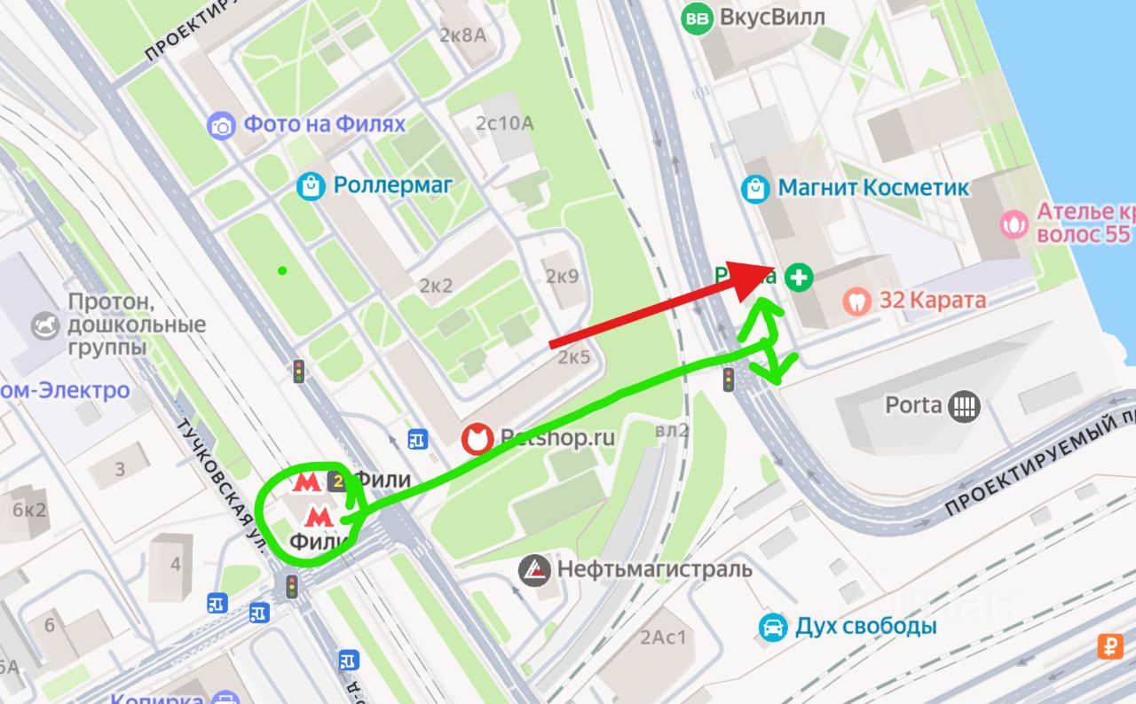 На пешеходном маршруте от ст.м. Фили (250 м.) к ЖК и БЦ Порта (класс А+, окончание строительства в 2025 г.). Первая линия улицы. Большая вывеска. Отличная видимость. В ЖК