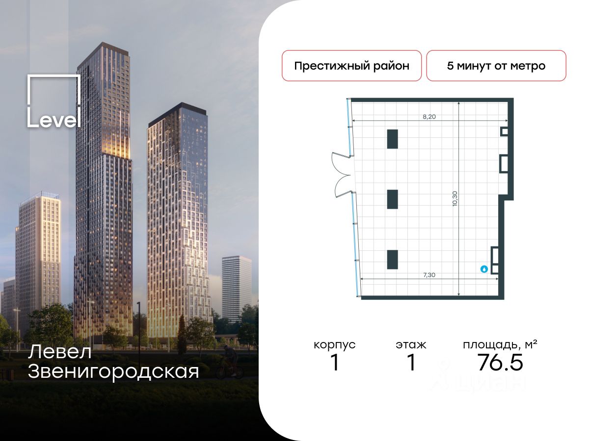 Продаётся помещение свободного назначения площадью 76.5 кв. м. в новостройке Левел Звенигородская по адресу Москва, СЗАО, Хорошево-Мневники, 3-й Силикатный проезд, вл. 6, корп. 1. Помещение со свободной планировкой. Окна с видом на улицу. Высота потолков 4.17 м. Отдельный вход с улицы. Стоимость помещения — 65 001 835 руб. Способы оплаты и более подробная информация по телефону.