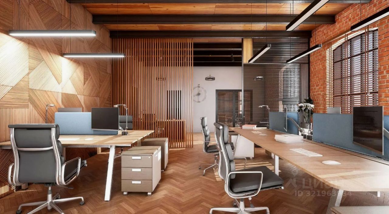 Здание с выразительной архитектурой и высокими потолками. Атмосфера уюта и стиля, подходит под представительский офис, кабинет, шоурум или арт-пространство.