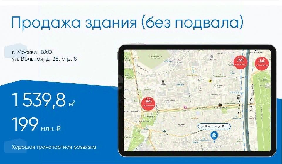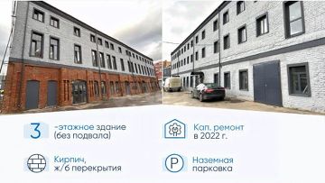 Здание 3-х этажное, кирпичное, площадью 1 539,8 м2, без подвала.