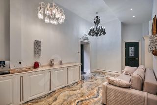 Описание помещения: Презентабельный офис на первом этаже с отдельным входом. Ремонт выполнен по индивидуальному проекту с итальянской мебелью и дизайнерскими люстрами для работы в любое время суток. Площадь включает - основной кабинет, два больших зала, примерочную, кладовую и санузел.