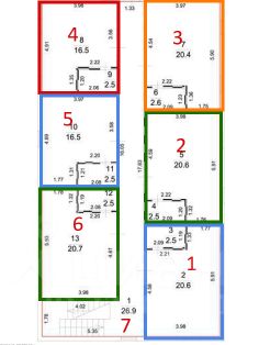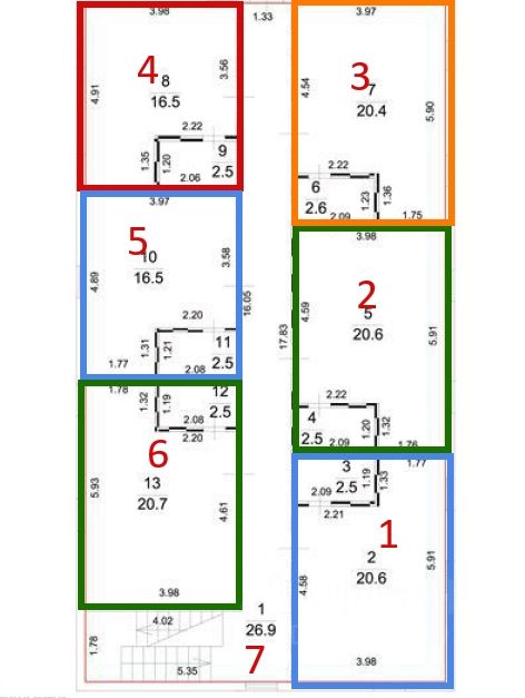 Разделен на 6 офисов, в каждом есть свой сан узел.