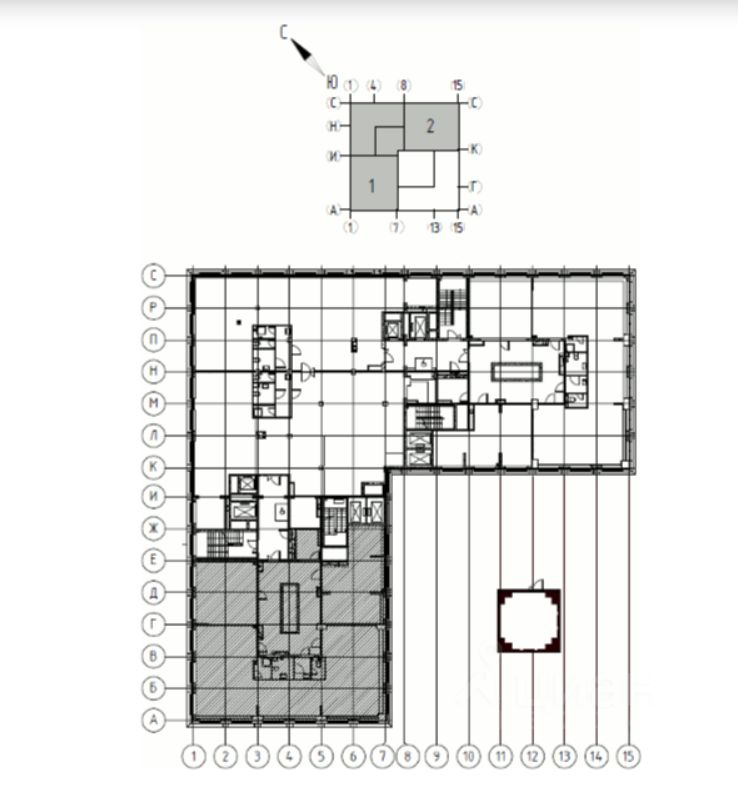 В корпусе с 1-го по 5-й этажи являются офисными, с 6-го этажа идут жилые