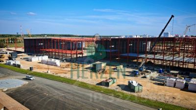 Стальной профилированный настил по двускатным металлическим фермам с уклоном 3%, с внутренним водостоком со сроком службы более 20 лет.