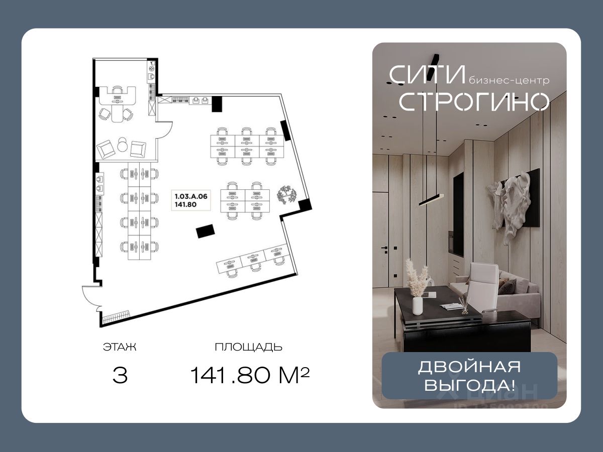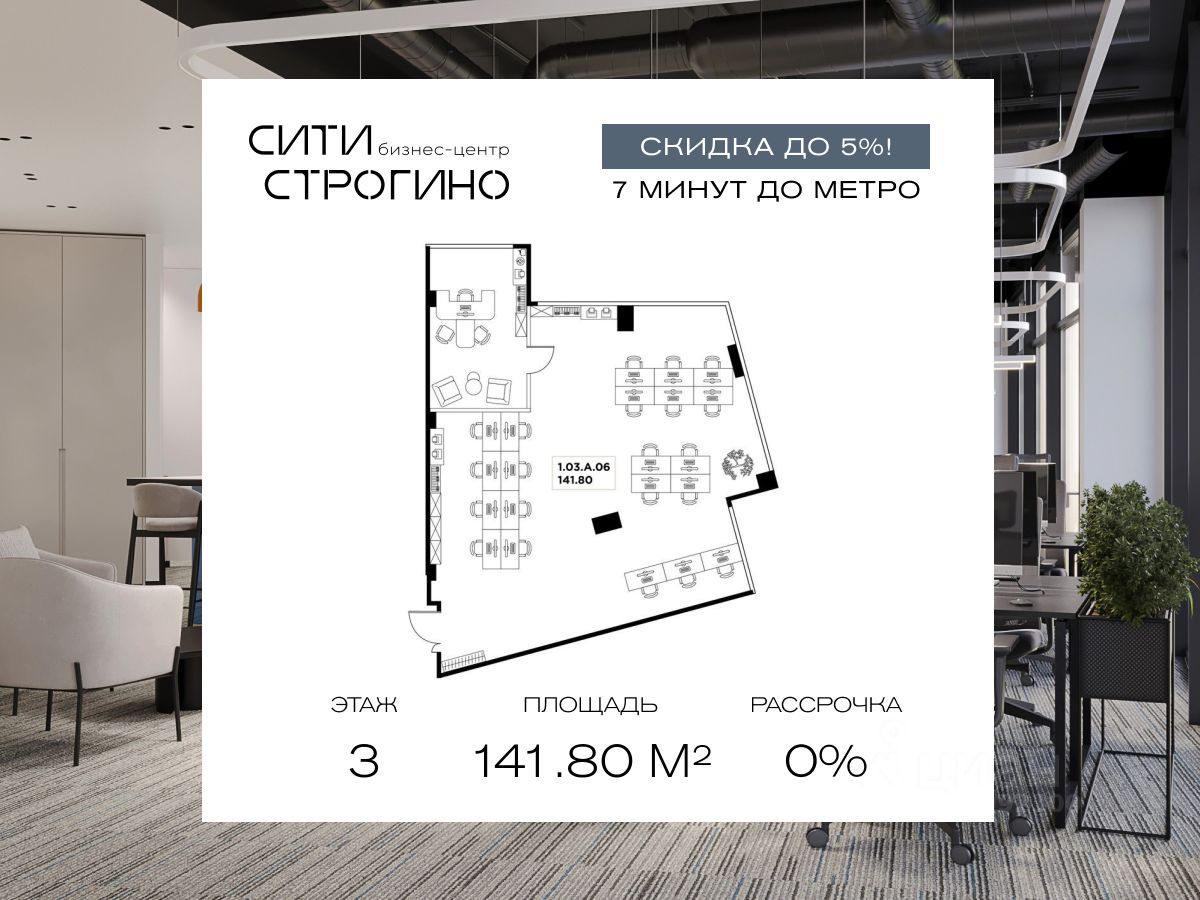 В продаже от застройщика комфортабельный Smart-офис площадью 141.8 м² на 3 этаже в премиальном бизнес-центре Сити Строгино. Срок сдачи - 2028 год.