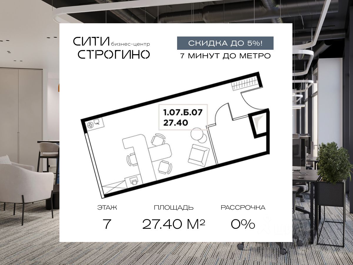 В продаже от застройщика комфортабельный Home-офис площадью 27.4 м² на 7 этаже в премиальном бизнес-центре Сити Строгино. Срок сдачи - 2028 год.