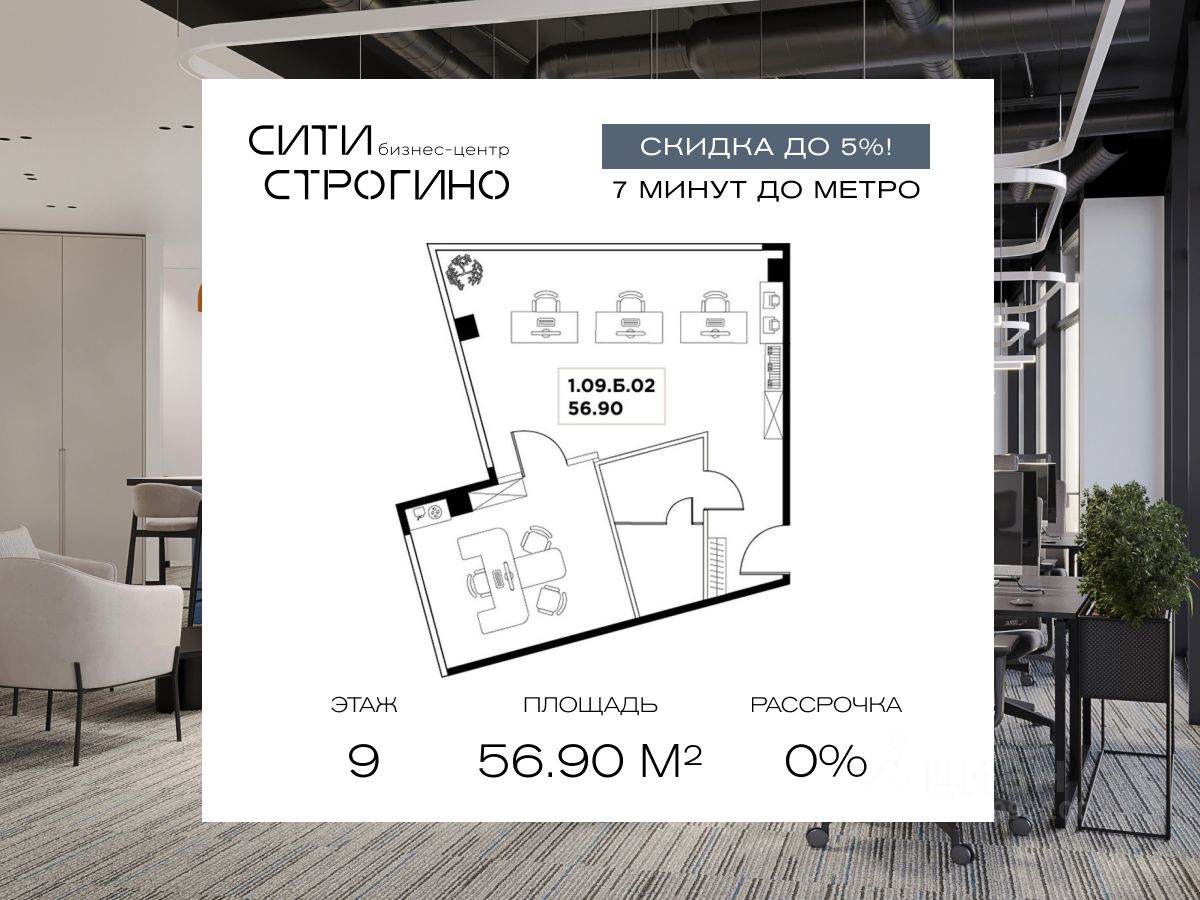 В продаже от застройщика комфортабельный Private-офис площадью 56.9 м² на 9 этаже в премиальном бизнес-центре Сити Строгино. Срок сдачи - 2028 год.