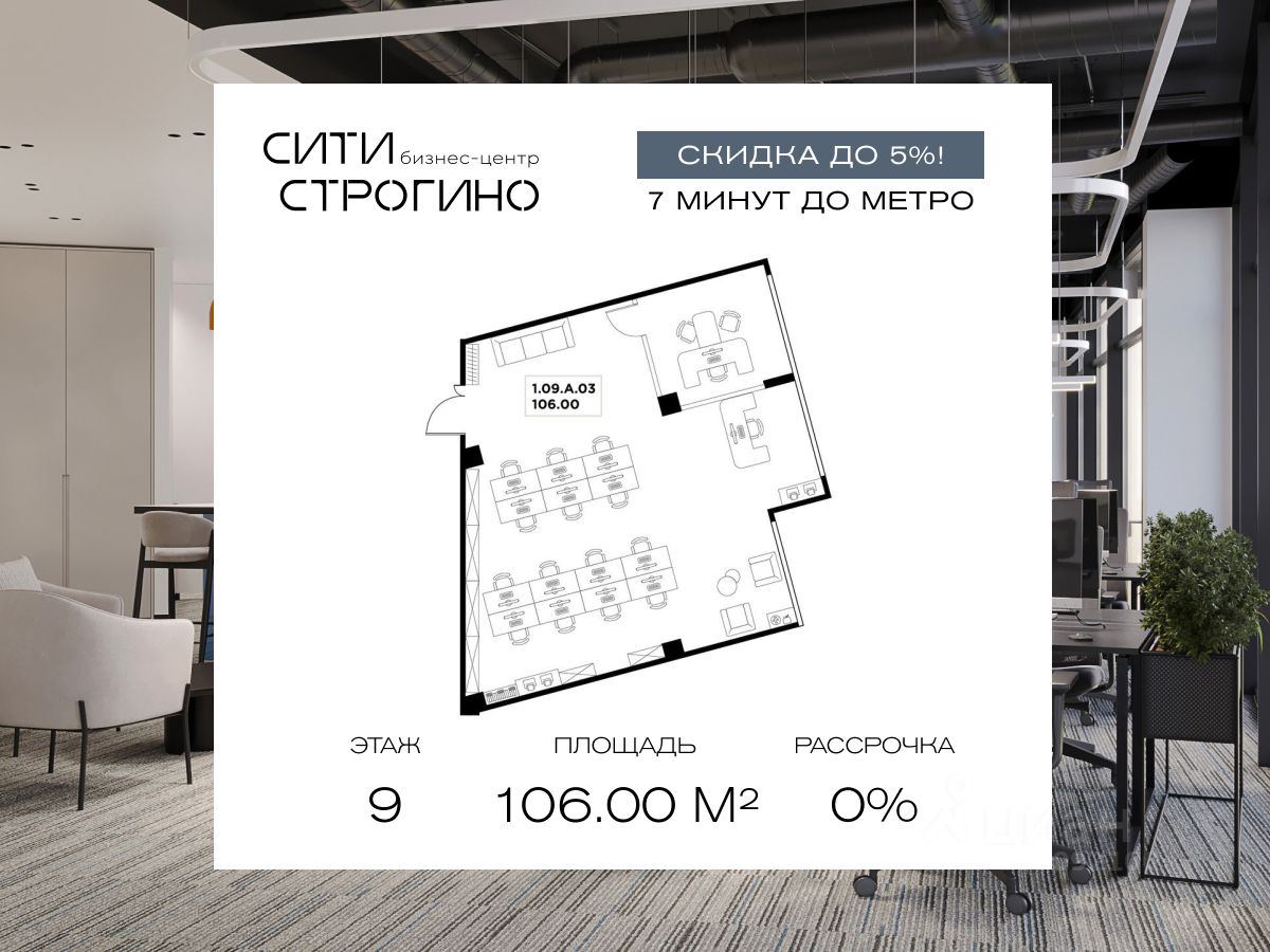 В продаже от застройщика комфортабельный Private-офис площадью 106 м² на 9 этаже в премиальном бизнес-центре Сити Строгино. Срок сдачи - 2028 год.