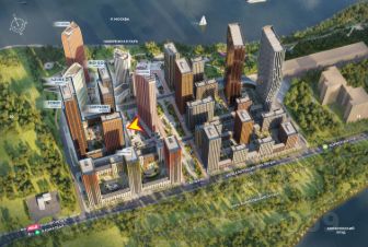 - находится в самом центре ЖК в корпусе высотностью в 52 этажа;