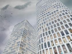 Бизнес-центр класса А представляет собой две современные 100-метровые башни, объединенные функциональным стилобатом, вкотором предусмотрена собственная развитая инфраструктура,а также трехэтажный камерный корпус.Общая наземная площадь бизнес-центра составит 92 тыс. кв. м. В настоящий момент
