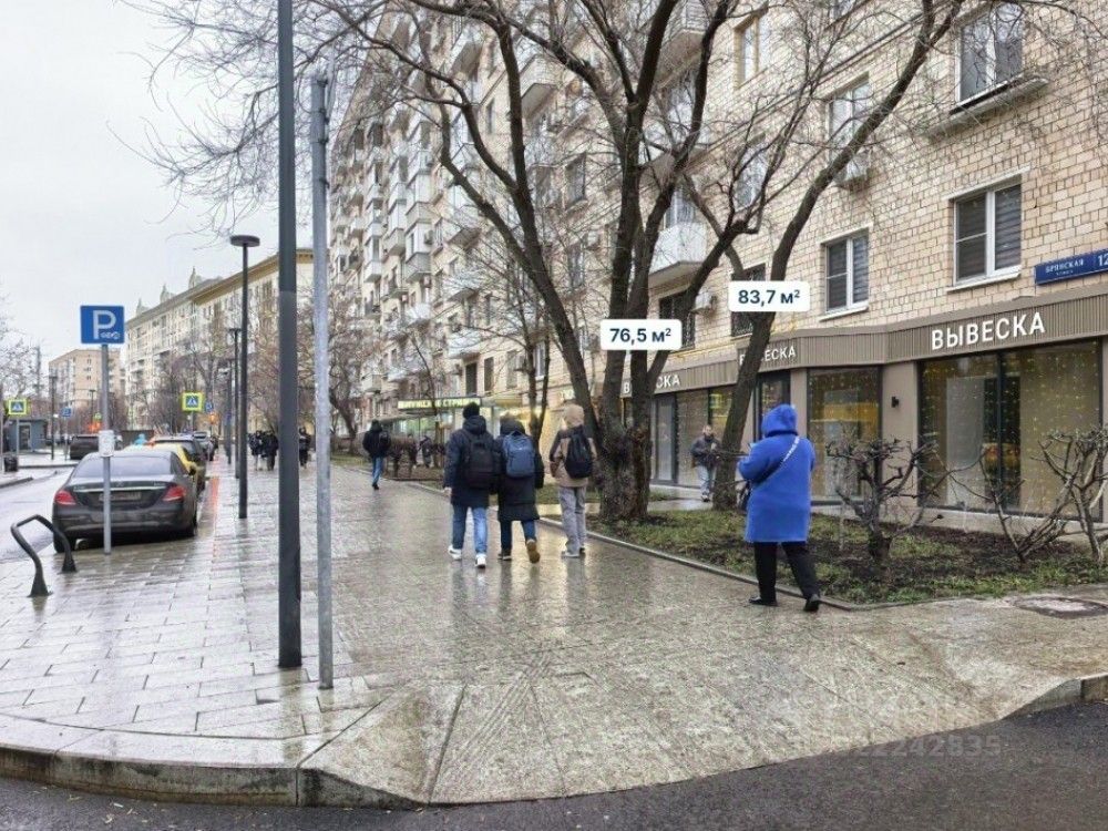 Предлагается на продажу помещение на улице Брянская, ЗАО, г. Москва. Шаговая доступность от ст. метро "Киевская" — 5 минут пешком. Отличная пешеходная и транспортная доступность. Высокий рекламный потенциал и возможность размещения вывесок на фасаде. Помещение под чистовую отделку. В окружении находятся ТЦ "Европейский" и "Киевский", жилой комплекс премиум-класса "Doro Mille", ЖК "Atlantic apartments", гостиница и бизнес-центр "Radisson Slavyanskaya", гостиница "Novotel", большое количество бизнес-центров, Дорогомиловский рынок и Киевский вокзал.