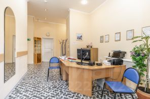 Просторная планировка включает 7 рабочих кабинетов и подсобные помещения. Высокие потолки 4 метра создают комфортную атмосферу и соответствуют всем нормативам. В стоматологии выделены зоны отдыха для персонала, гардеробная, постирочная. Помещение подключено ко всем городским коммуникациям.