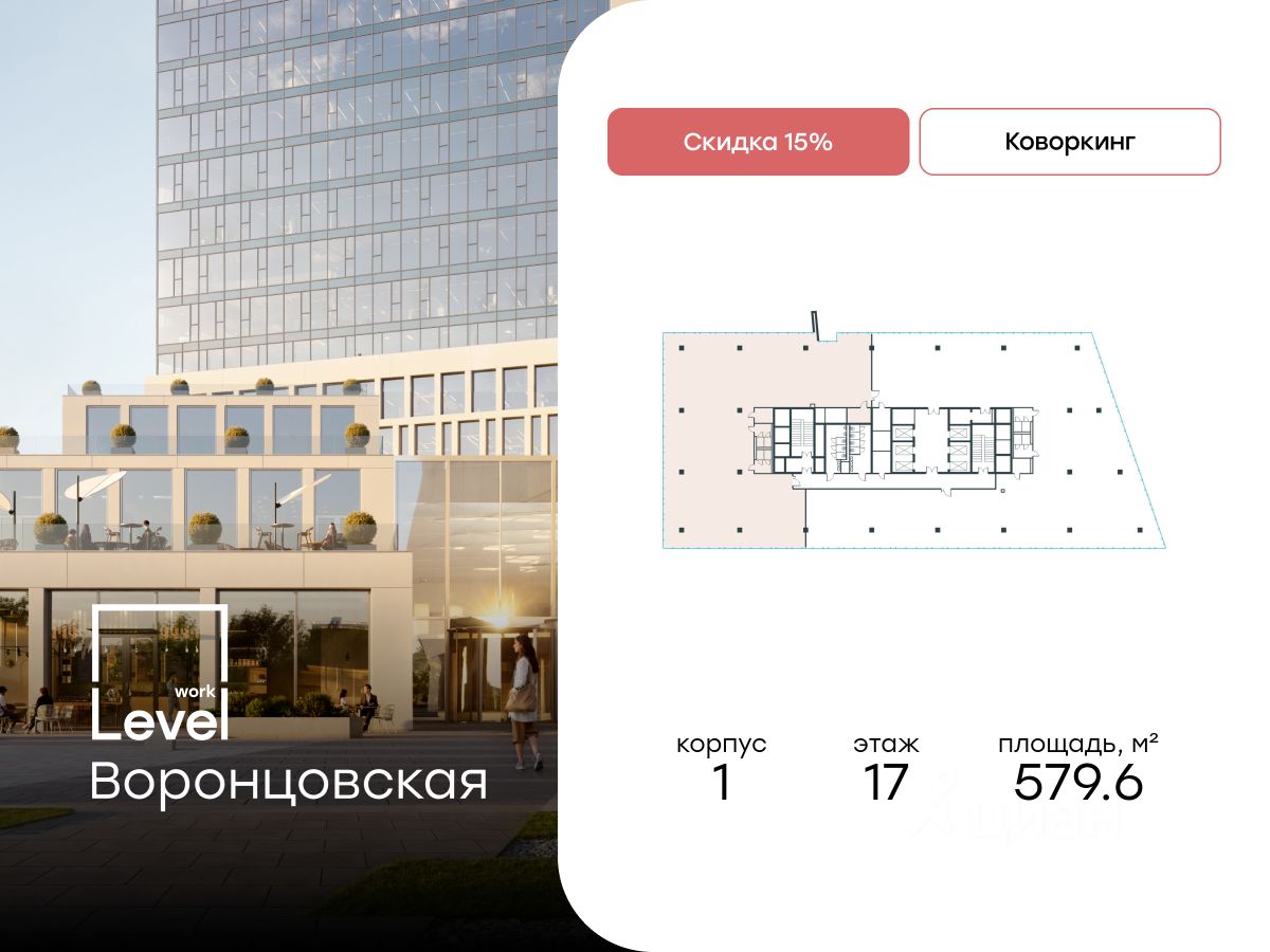Продаётся помещение площадью 579.60 кв. м в Level work Воронцовская (от компании Level Group), новом бизнес-центре класса A в престижном Обручевском районе Москвы (ЮЗАО).