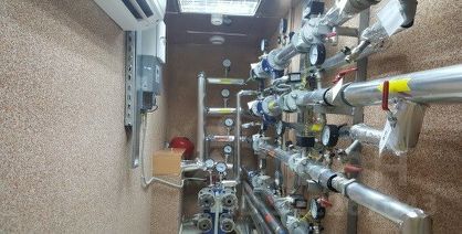 В цокольном этаже располагаются свой ЦТП (тепловой узел), водяной узел, электрощитовая и серверная, панели управления и оповещения в случае аварийных ситуаций