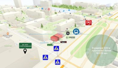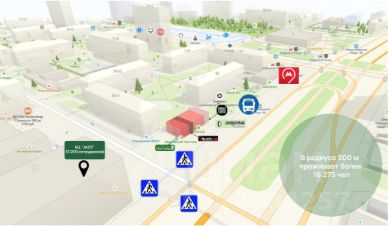 Помещение располагается на первой линии домов в 100 метрах от выхода из станции метро Марьина Роща с пассажиропотоком 20 000 человек в сутки, в 10 метрах остановка общественного транспорта. Рядом перекрёстный пешеходный переход, который напрямую ведёт к объекту. Более 5425 квартир только в радиусе 500 м. В шаговой доступности БЦ JAZZ, БЦ Двинцев, БЦ Nеvis, БЦ Новосущёвский, общая численность сотрудников 15 000 человек. Сверхинтенсивный автомобильный и пешеходный трафик.