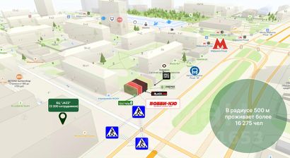 В 100 м выход из метро Марьина Роща с пассажиропотоком 20 000 человек в сутки.