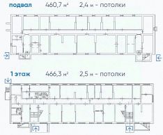 - Площадь по этажам: подвал - 460,7 м2, 1 эт. - 466,3 м2, 2 эт. - 467,1 м2, 3 этаж - 466,1 м2;