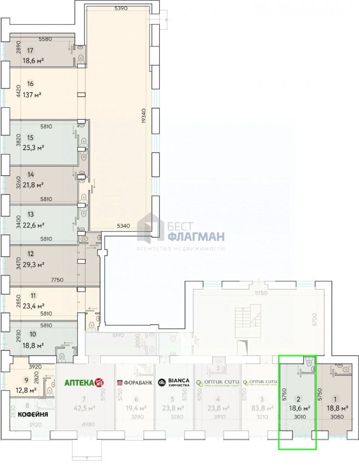 Арт. 118252757 Продается помещение свободного назначения 18,6 кв.м. на 1 этаже 8ми этажного жилого дома на ключевой артерии города Ленинский проспект