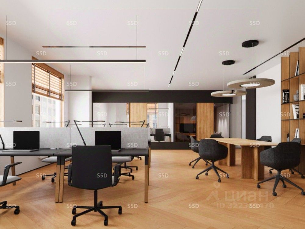 Коммуникации: канальное кондиционирование, приточной-вытяжная вентиляция, светодиодное освещение, СКУД по технологии Face ID c учетом рабочего времени и доступом через мобильное приложение, офис без проводов - все провода проходят через пол и подходят к столам по ножкам через скрытые каналы