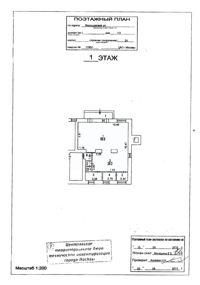 административном здании «на ул. Воронцовская, 1/3с2А»