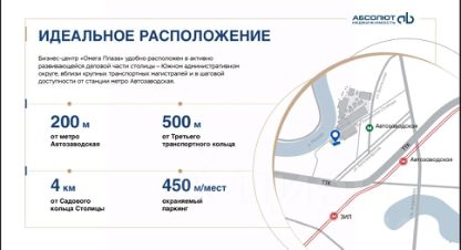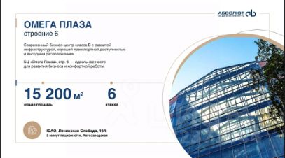 Продажа помещения свободного назначения ОМЕГА ПЛАЗА Современный бизнес-центр класса В с развитой инфраструктурой, хорошей транспортной доступностью и выгодным расположением. БЦ Омега Плаза, стр. 6 - идеальное место для развития бизнеса и комфортной работы. - Панорамное остекление!!!! обилие естественного света - Круглосуточная охрана: видеонаблюдение, контроль доступа - Охраняемый паркинг на 450 машиномест - Современные инженерные коммуникации - Профессиональная управляющая компания - Отдельно стоящее здание - 15 200 м — общая площадь - 6 этажей - 2 входные группы - 5 грузопассажирских лифтов - до 3,5 м потолки ИДЕАЛЬНОЕ РАСПОЛОЖЕНИЕ Бизнес-центр Омега Плаза удобно расположен в активно развивающейся деловой части столицы - Южном административном округе, вблизи крупных транспортных магистралей и в шаговой доступности от станции метро Автозаводская. 200м от метро Автозаводская 500м от Третьего транспортного кольца 4км от Садового кольца Столицы 450 м/мест охраняемый паркинг ОПЕРАТИВНЫЙ ПОКАЗ!! Пишите/ звоните, успевайте забрать свое комфортное, идеальное помещение