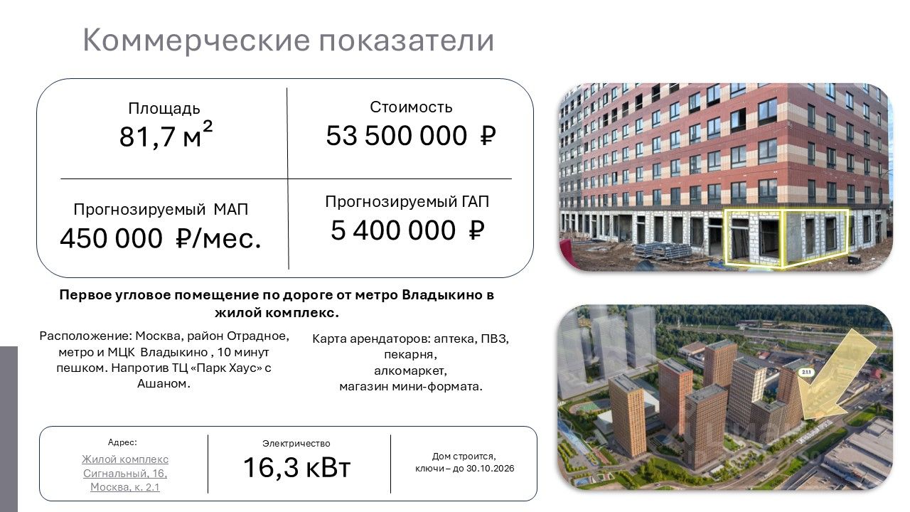 Первое угловое помещение от метро для всех жителей комплекса в существующей и перспективной застройки.