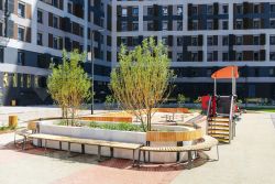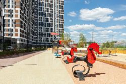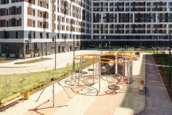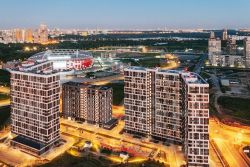 В нескольких сотнях метров располагается стадион "Открытие Арена" (домашняя арена футбольного клуба "Спартак) . Возможно, именно с этим связано "физкультурное" название апарт-комплекса.