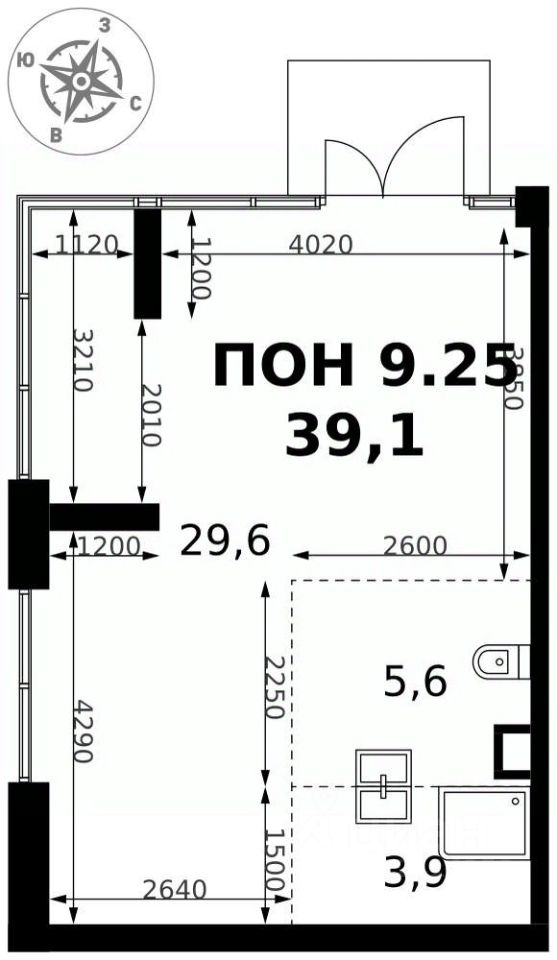 39,1 м²