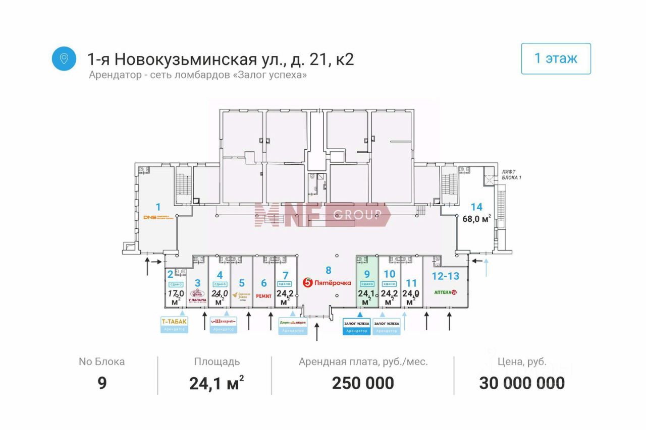 Лот: 36044. Помещение свободного назначения формата Street Retail в ЮВАО Москвы. 5 минут пешком до станции метро Рязанский проспект. Первая линия домов. Активный трафик. Плотный жилой массив. Сложившееся торговое окружение вокруг.
