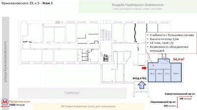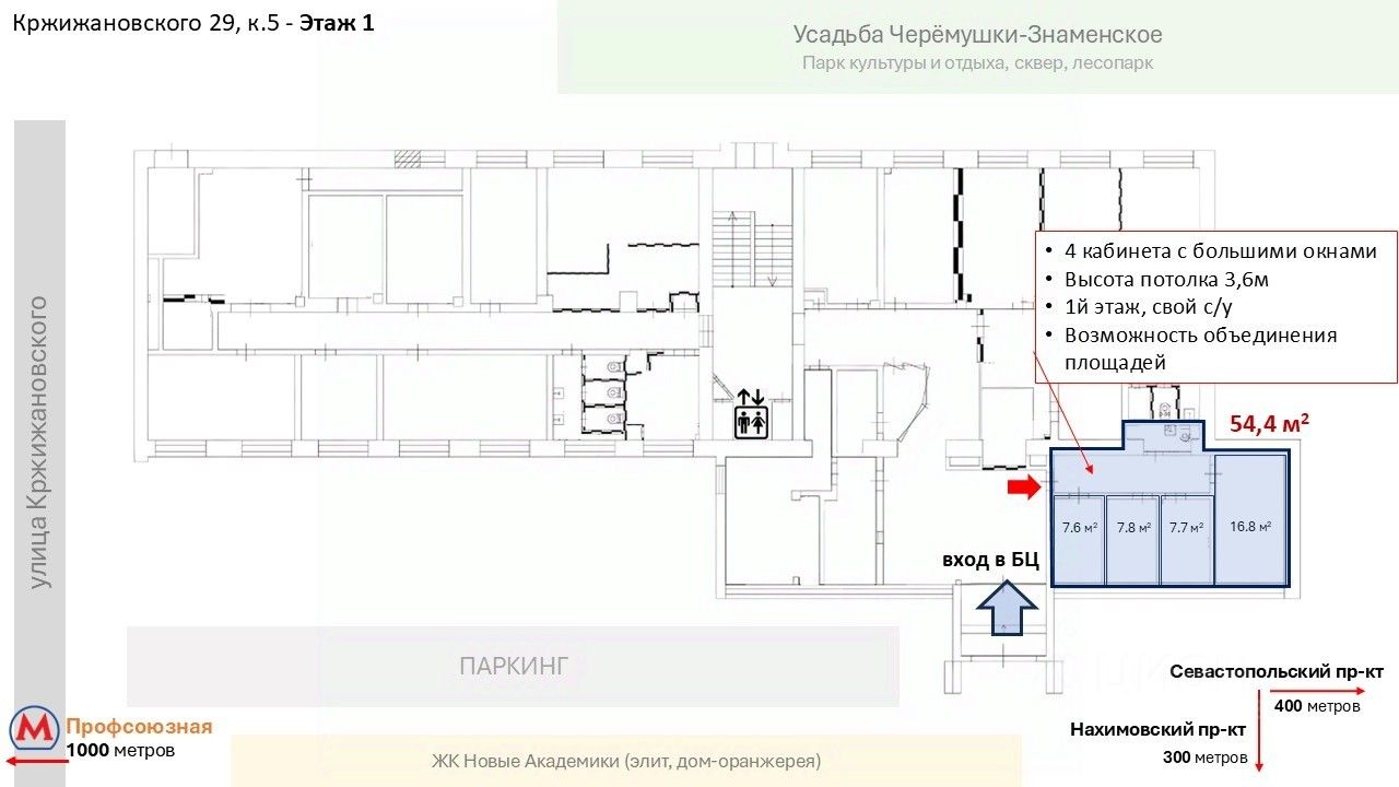 Близость к метро Профсоюзная, Академическая, Калужская - район с высокой деловой активностью.