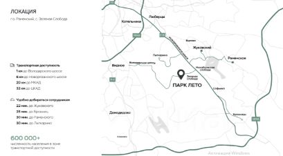 Объект расположен на юге Московской области вблизи Новорязанского шоссе в 29 км от МКАД.