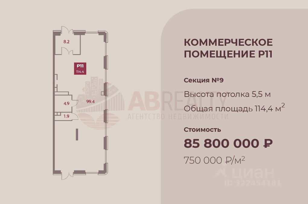 В престижном районе Раменки в новом роскошном жилом комплексе Легаси продается нежилое помещение на 1 этаже площадью 114,4 кв.м.