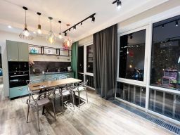 - Оснащённая кухня: кофемашина, чайник, тостер, микроволновая печь, холодильник, варочная панель, посуда и все мелочи для комфортной жизни.