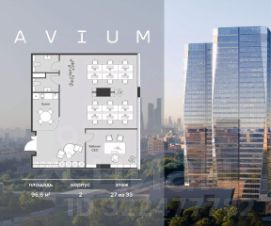 Продажа премиальных офисов в бизнес центре AVIUM. Две 34-этажные башни, объединённые галереей и дочерним корпусом.