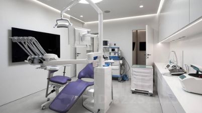 В стоматологии выполнен дизайнерский ремонт из натуральных материалов. натуральный камень, латунь.