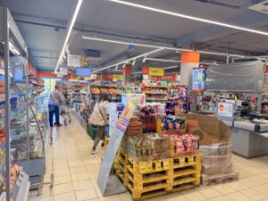 -Центр посёлка, рядом жилой массив и высокий пешеходный трафик.