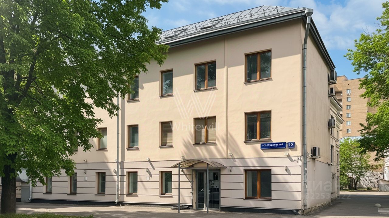 Трёхэтажный особняк с подвалом и мансардой в Воротниковском переулке в Тверском районе. Здание площадью 512 м² было построено в 1900 году, фасад выполнен из штукатурки светлого оттенка. Особняк и инженерные коммуникации в хорошем состоянии. Внутри смешанная планировка, организованы кабинеты, залы для размещения рабочих мест, помещения для проведения презентаций, небольшой кинотеатр, кухня, бытовые помещения и серверные комнаты. На территории организована парковка за шлагбаумом. Особняк подойдет под арендный бизнес, размещение офисов или медицинского центра, клиники.