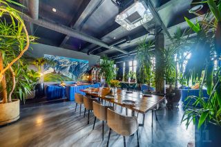 Грузинский ресторан, чайхана, дарк-китчен много лосося, школа танцев, барбершоп.