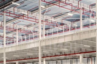 Энергосберегающая система отопления с газовыми кондиционерами-руфтопами (при -35 С вне здания: +16 С на складе и +20 С в офисе), ESFR-25 противопожарная и сплинкерная система, оптико-волоконная линия связи, выделенная мощность 1,6 МВт.
