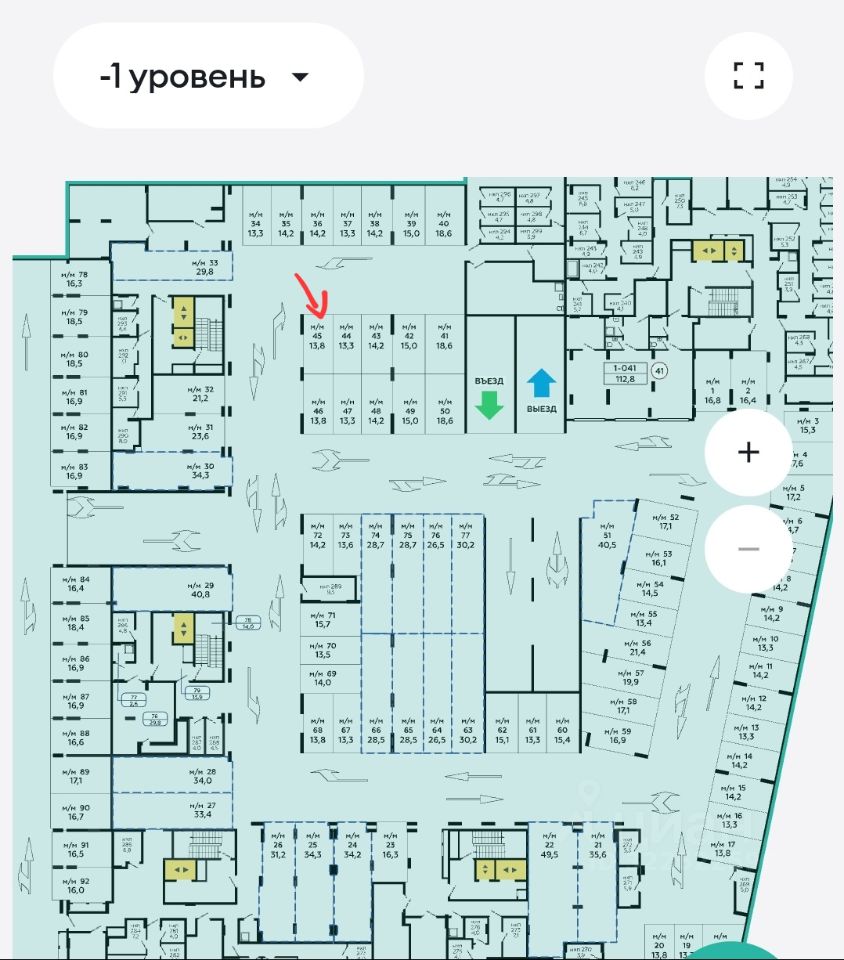 Продается машиноместо номер 45 в жк "Бунинские кварталы" на -1 этаже 13.8 м² по адресу ул.Куприна д7к1. Дом и паркинг сданы, крайний к дороге с удобным заездом. Место располагается в 3 метрах от лифтовой подъезда и очень близко к выезду. Собственник, все документы в наличии