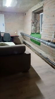 С техникой с мебелью комфортное помещение с кирпичными стенами 80 см на возвышенности в 5 минутах торговый комплекс Гудзон. Сделана приточно вытяжка вентиляция. Помещение не жилое и находится в цоколе прописки нет.