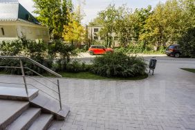 Огороженная территория, охрана, развитая инфраструктура (подземный паркинг, фитнес-клуб, медицинский центр). Высокий автомобильный трафик.
