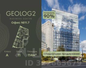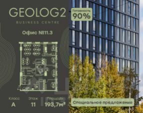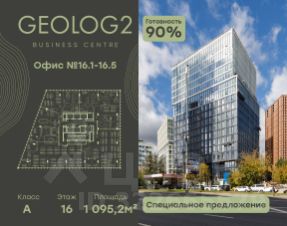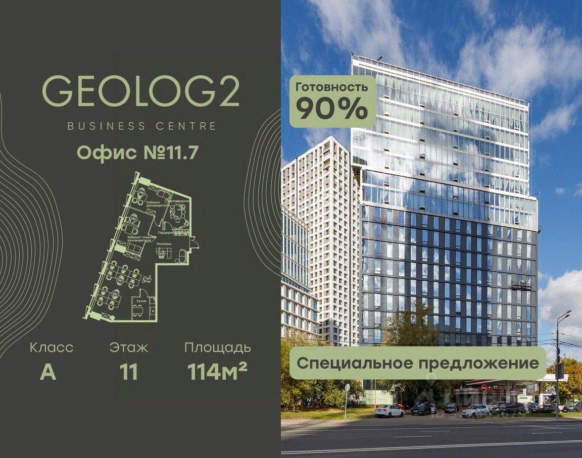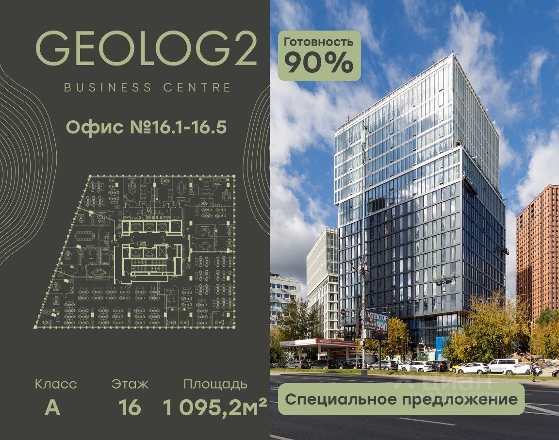 Продажа офисов в новом, концептуальном Бизнес-центре GEOLOG2. Бизнес-центр представляет собой отдельное офисное здание класса А: с просторным двухсветным лобби с панорамными окнами, бизнес-гостиной и подземной парковкой для резидентов. Расположен на Юго-Западе г. Москвы, в 7-ми минутах пешком от м. Калужская. Архитектурная концепция здания разработана Архитектурным бюро Blank Architects. В основу идеи заключен принцип тектонических сдвигов: смещения частей здания относительно друг друга, в результате чего архитектурный облик здания визуально разделяется на две, разные по объему и площади остекления, части.